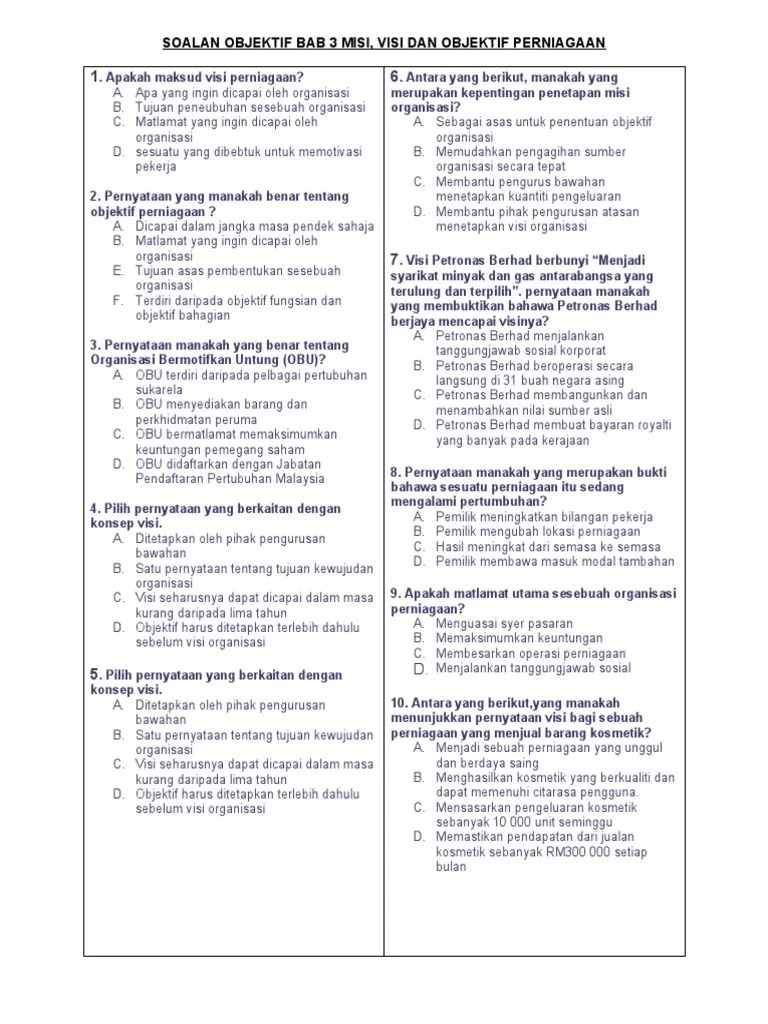 Contoh Visi Misi Dan Objektif Perniagaan Kosmetik / Perniagaan T4 Pdf
